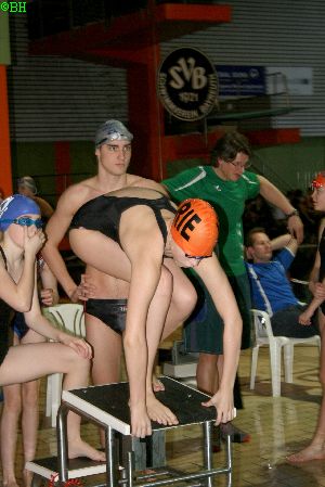 Siegerehrung Jahrgangswertung 1991 400m Lagen Platz 1 Patrick H. |  |  TSV-Hohenbrunn-Riemerling-Team |  Patrick mit Tesi (Baerens) - Tesi wurde Bayerische Meisterin über 400m Lagen |